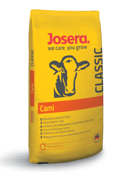 JOSERA Cami on kõrgekvaliteediline mineraalsööt, mis sisaldab eriti palju kaltsiumi ja mida soovitatakse kasutada koos kõrge fosforisisaldusega söödaga. Kõrgekvaliteediliste mineraalide, piisava mineraalide varu ja vatsa-kaitstud seleeni sisalduse tõttu vastavad tooted kõrge tootlikkusega piimakarjakasvatusettevõtete nõuetele. JOSERA Cami regulaarne söötmine kaitseb piimalehmi söödaga seotud puudulikkuse sümptomite eest ning soodustab loomade viljakust, tootlikkust ja pikaealisust.